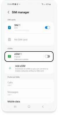 - لا تقم بحذف ال eSIM من الجهاز لأنه لن يكون من الممكن استخدامه مرة أخرى بعد ذلك.