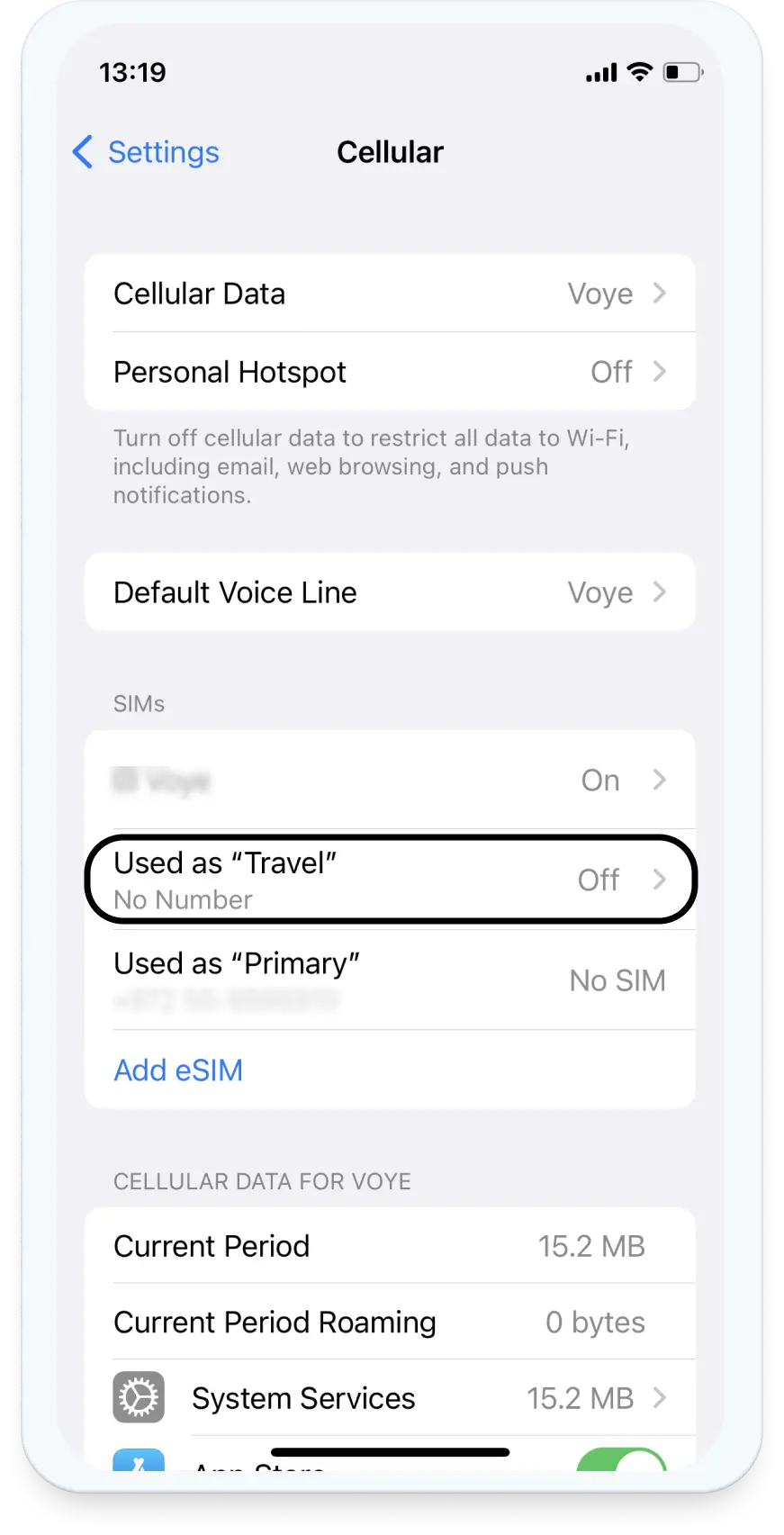 - ننصحك بتسمية ال eSIM الجديدة الخاصة بك باسم “VOYE”.